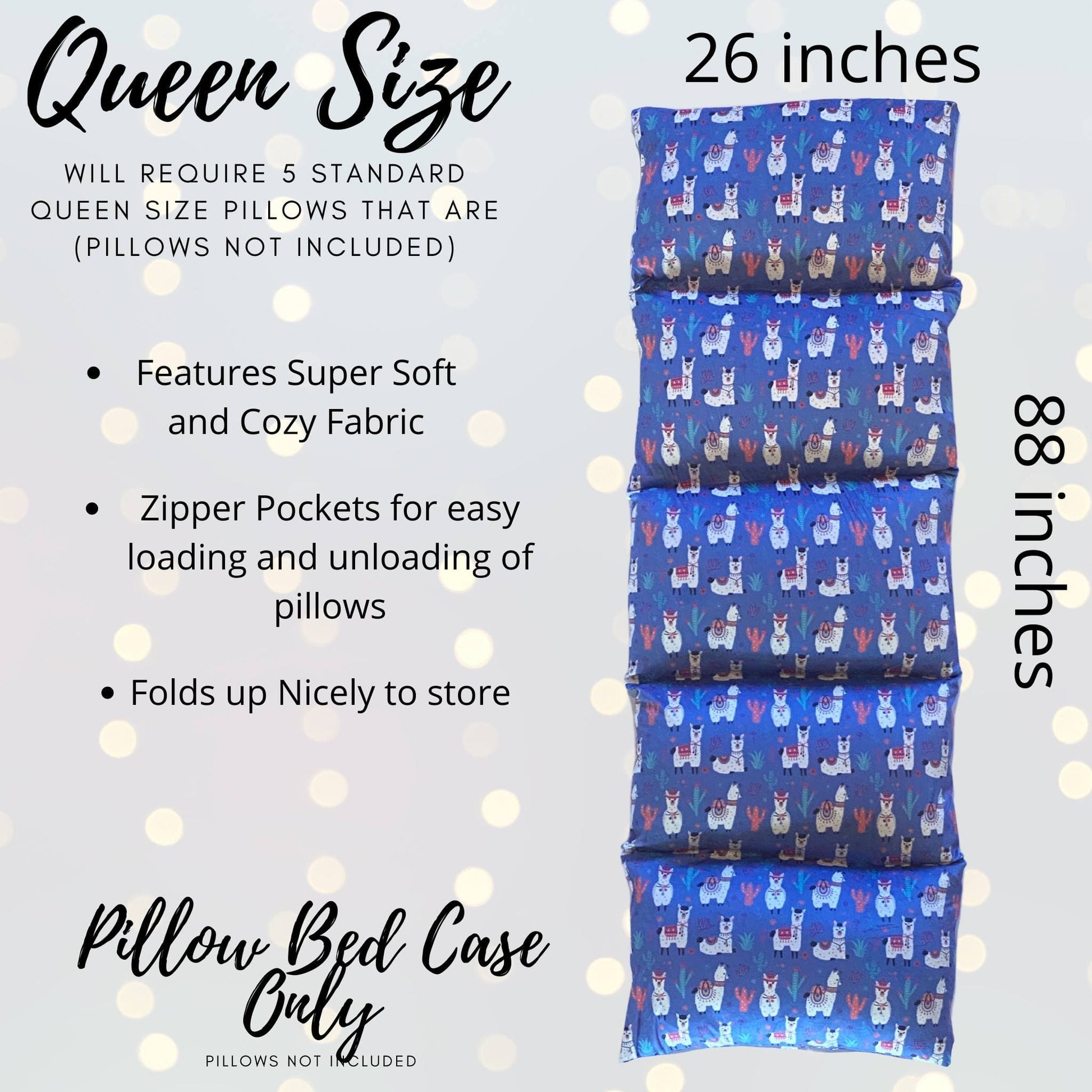 Easy to Use and Clean: This large pillow case cover does not include the pillows. Simply load 1 queen size pillow into each of the 5 zippered pockets. It's easy to unload and wash or fold up and put away when not in use. Machine washable on a delicate cycle or hand washable. Lay flat to dry or tumble dry on low. 🧼🔄