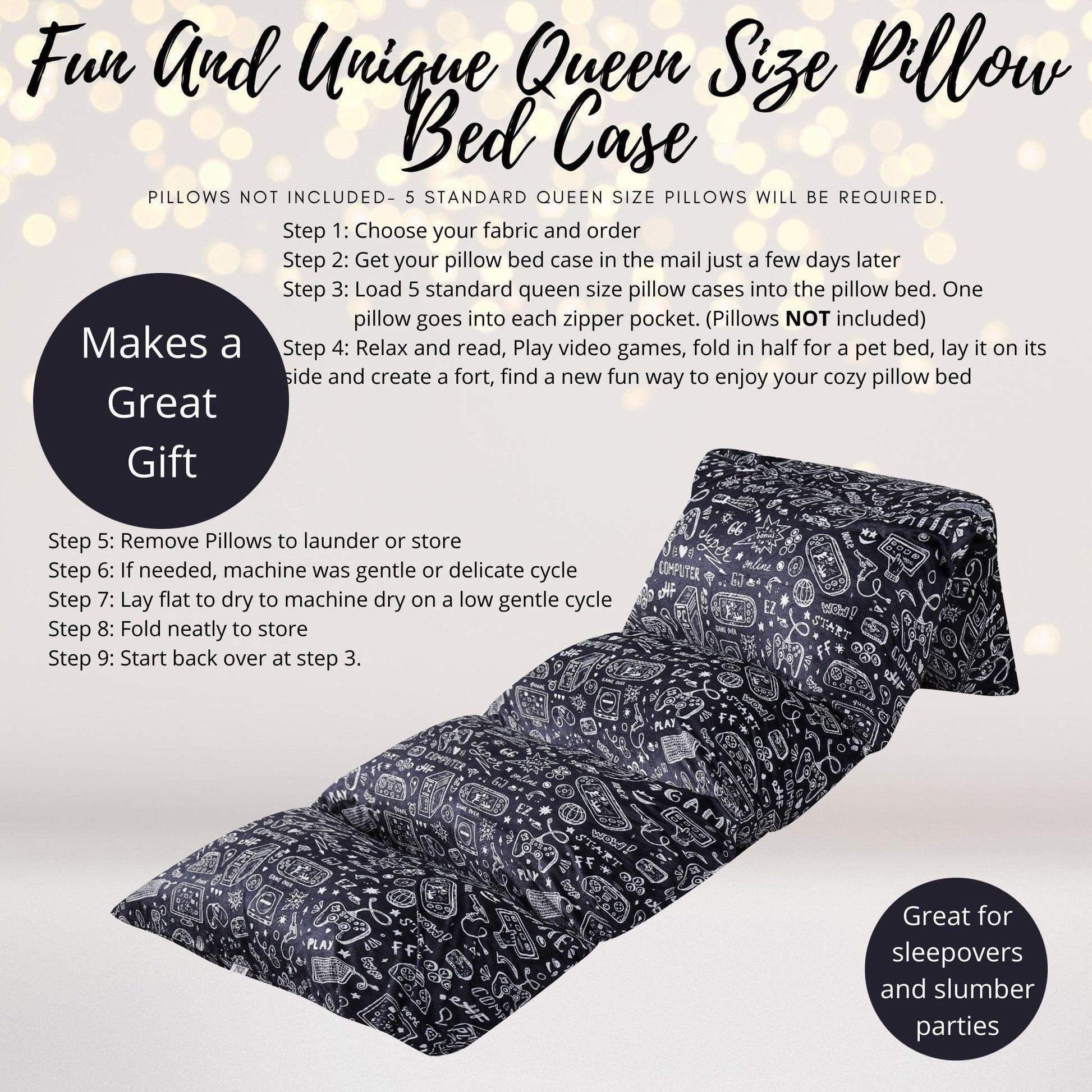 Video Gamer Pillow Bed Slipcover, Floor Lounger Gaming Slipcover,